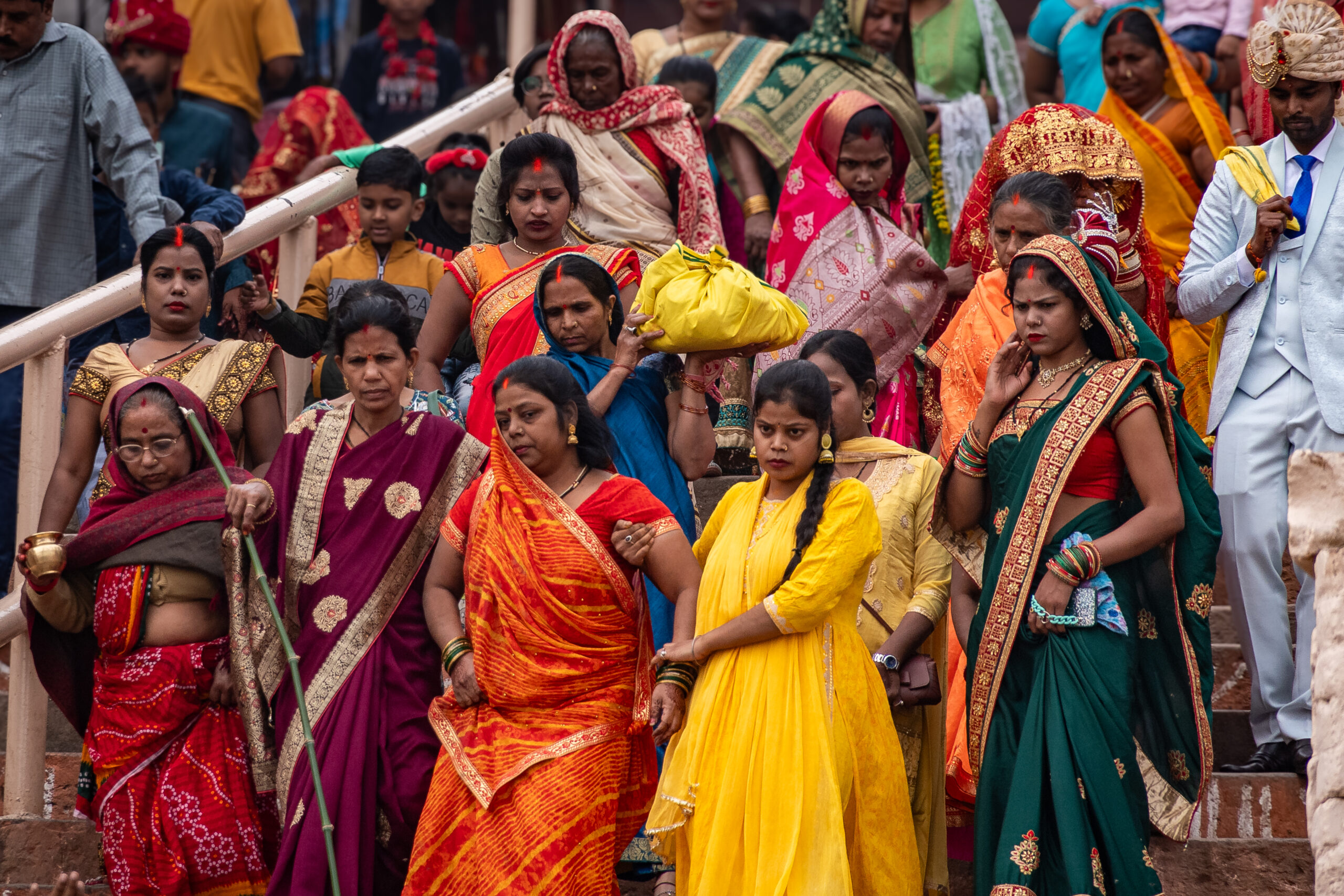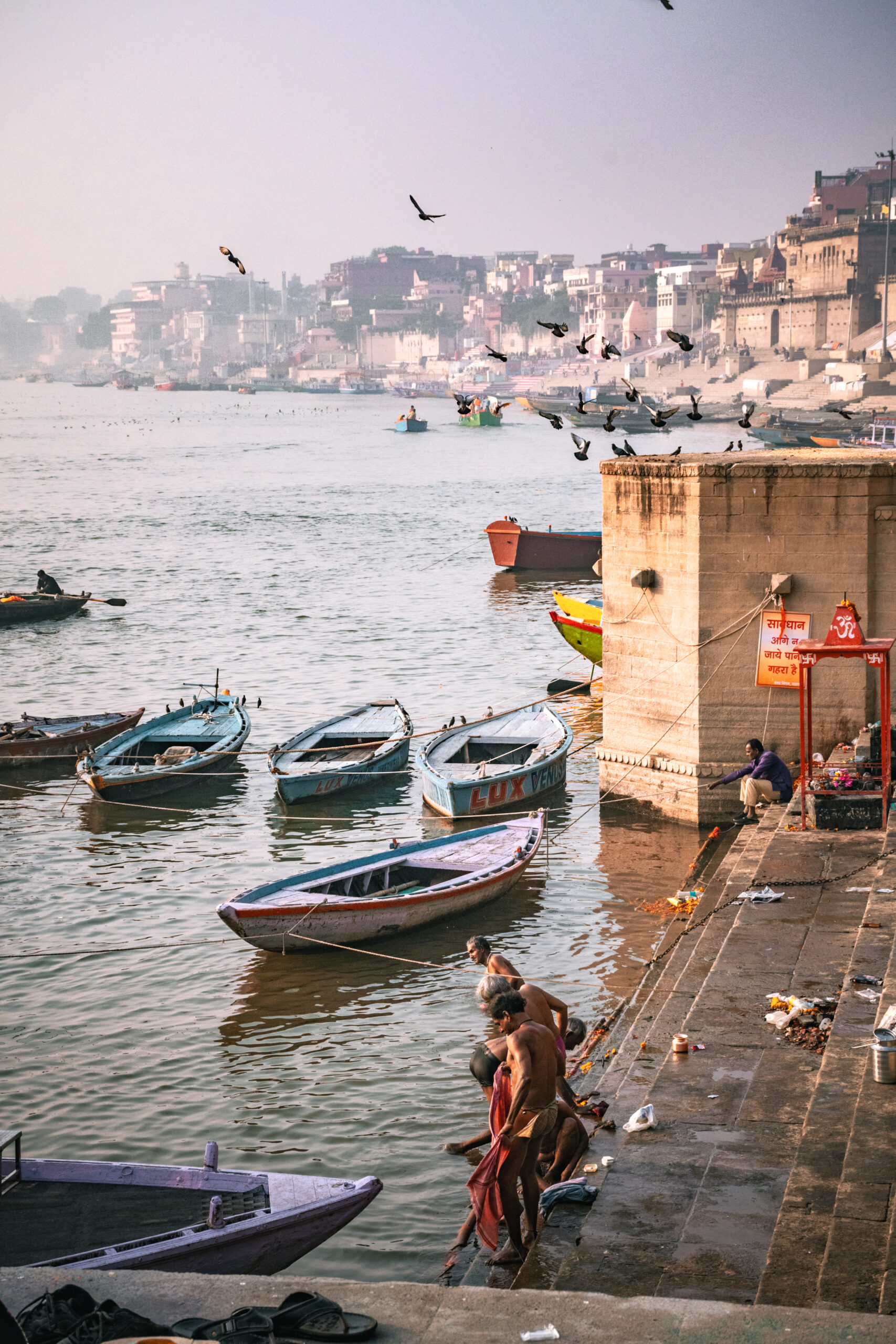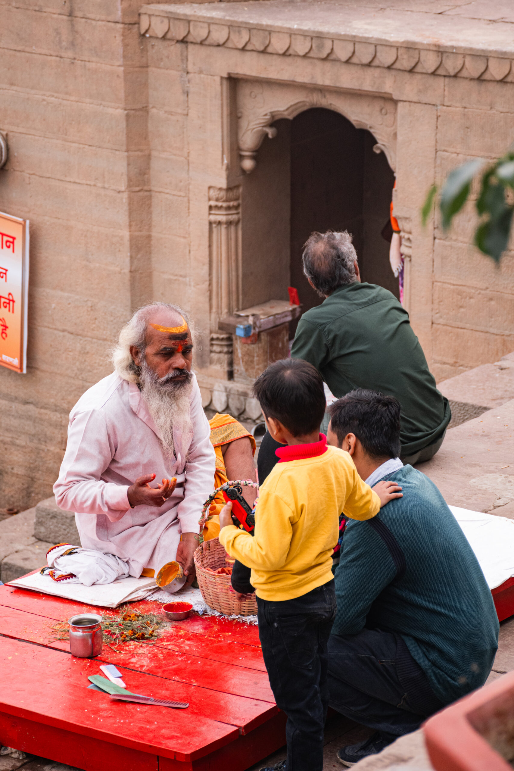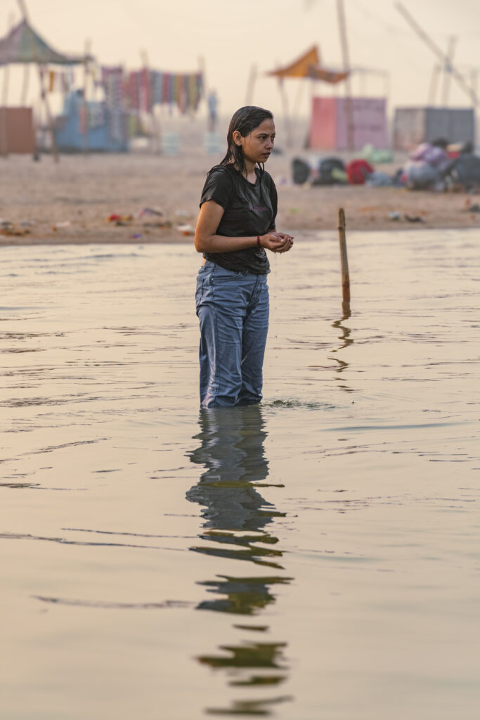 Les couleurs, les textures et les nuances de lumière viennent ponctuer mes portraits, mais toujours au service de l’intimité et de l’âme des sujets. Chaque cliché est pour moi une immersion, une façon de raconter la vie à Varanasi à travers ses habitants et ses pélerins, dans leur simplicité, leur dignité et leur profondeur.